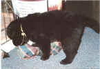 Keeper's litter of puppies, whelped May 6, 2001. Click on any thumbnail to see a larger version. Keeper in the backyard (left) and bringing Kathy her keys. Keeper (left) & her dad,